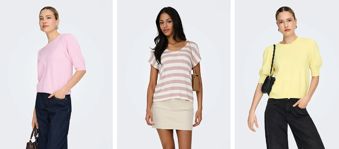Pastelltöne wie Mintgrün, Flieder oder Zartrosa sorgen für eine frische, sommerliche Stimmung. Knallige Akzente wie Korallenrot oder Neon-Details bringen Energie in Outfits. Bunte Prints – von Blumen über grafische Muster bis hin zu abstrakten Designs – sind absolut angesagt und lassen Raum für individuelle Styles. Von gemütlich bis cool sind die Schnitte und die relaxten Basics mit Style: Angesagt sind immer noch die All-Time-Favorites wie ockere T-Shirts und Hoodies – am liebsten mit coolen Logos, Statement-Prints oder DIY-Vibes. Crop-Tops bleiben ein weiteres Must-Have im Sommer und werden mit Jeans, Shorts oder Röcken kombiniert.